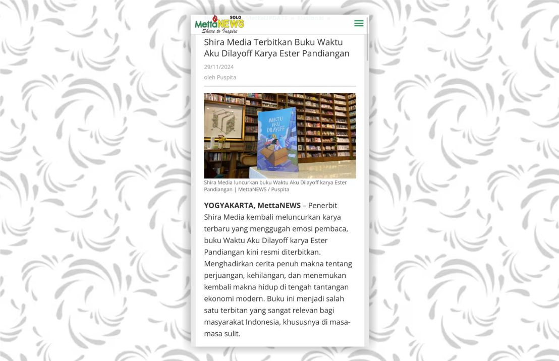 Shira Media Terbitkan Buku Waktu Aku Dilayoff Karya Ester Pandiangan